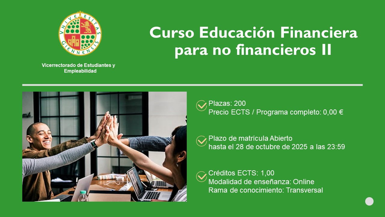 El Vicerrectorado de Estudiantes y Empleabilidad de la Universidad de Jaén organiza para el curso 2025-2026 un programa de actividades de formación en colaboración con el proyecto EDUFINET de educación financiera, impulsado por la Fundación UNICAJA y UNICAJA Banco, haciendo posible que la Universidad de Jaén participe en el fomento de la educación financiera de la comunidad universitaria, con especial atención a sus estudiantes.