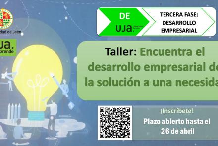 27April Formaci贸n "Encuentra el desarrollo empresarial de la soluci贸n a una necesidad" (on-line) 09:30:00 a 12:30:00 贸 16:30:00 a 19:30:00 - Universidad de Ja茅n. ON-LINE Con la publicaci贸n de la 3陋 Fase del Concurso de Emprendimiento INSIDE