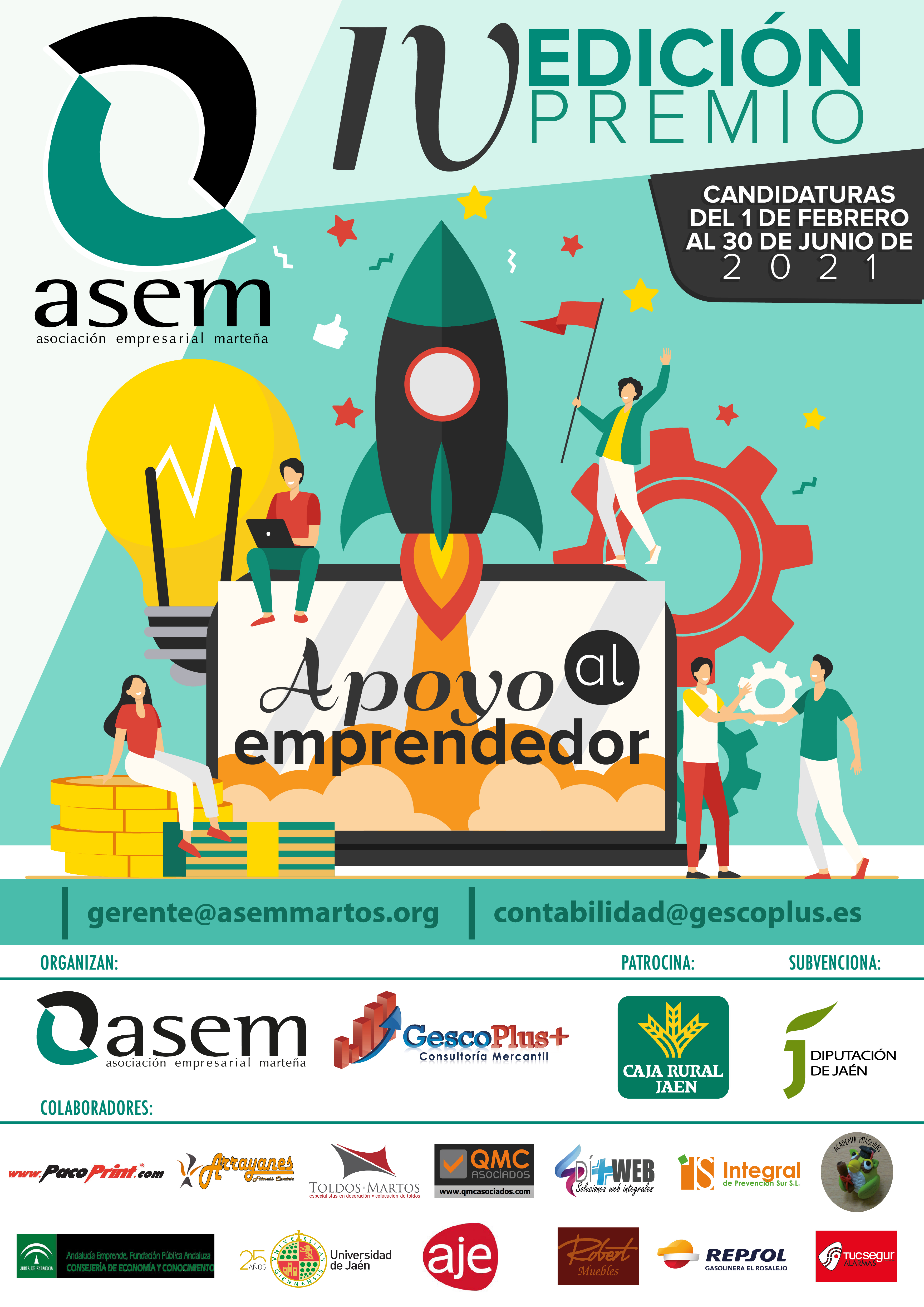 La Asociaci贸n Empresarial Marte帽a, ASEM, en colaboraci贸n directa con la empresa asociada GESCOPLUS Consultor铆a Mercantil SL, convocaron el Premio ASEM Apoyo al emprendedor cuyo plazo de participaci贸n finaliza el 30 de junio de 2021.